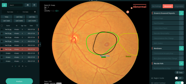 이를 통해 사용자는 안저 내 구획 분할 정보를 얻을 수 있으며 주요 소견의 위치적 특성을 직관적으로 확인할 수 있다.