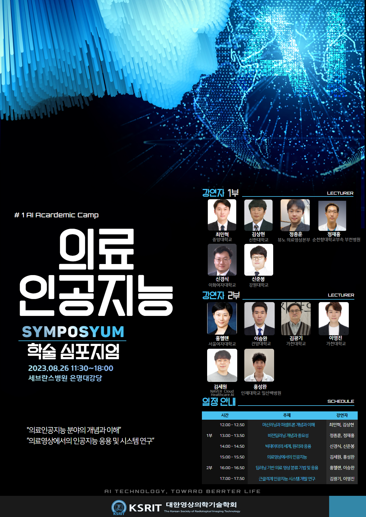 이번 학술대회는 '의료인공지능 분야의 개념과 이해', '의료영상에서의 인공지능 응용 및 임상 시스템 연구'를 주제로 8월 26일 세브란스병원 은명대강당에서 열린다.