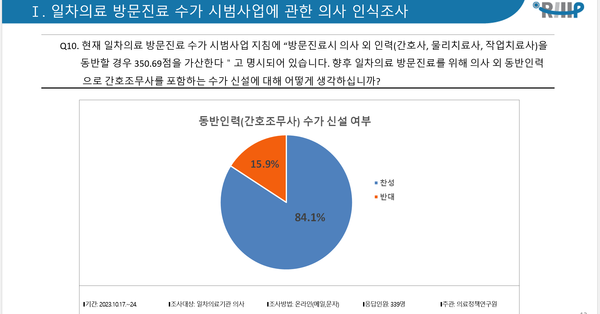 동반인력(간호조무사) 수가 신설 여부 질문에 84.1% 찬성 의견