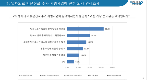 이어 홍보 부족으로 미리 알지 못해(17.9%), 방문진료 수가가 너무 낮아(15.3%), 방문진료를 지원할 인력이 부족해(13.9%) 등의 순으로 나타났다.