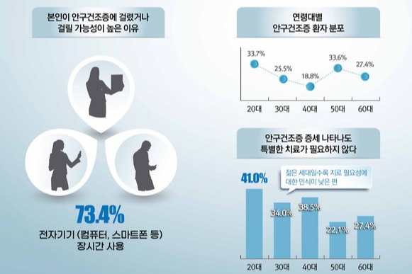 안구건조증은 조기에 진단받아 적절한 치료가 필요하지만 젊은 세대는 중년 세대에 비해 안구건조증 치료 필요성에 대한 인식 수준이 낮은 것으로 나타났다.