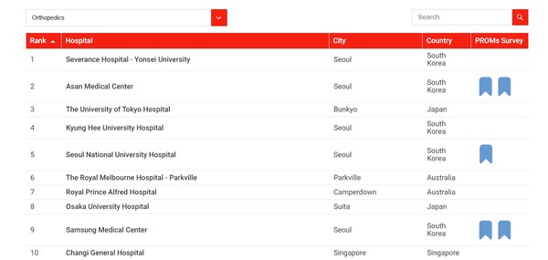 이번 조사에서 세브란스병원 정형외과는 수년째 세계 톱10 아시아태평양 1위를 차지했다.