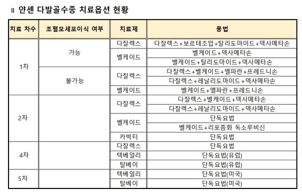 현재 다잘렉스는 조혈모세포이식이 가능한 환자와 불가능한 환자의 1차 치료옵션으로 사용 가능하다.