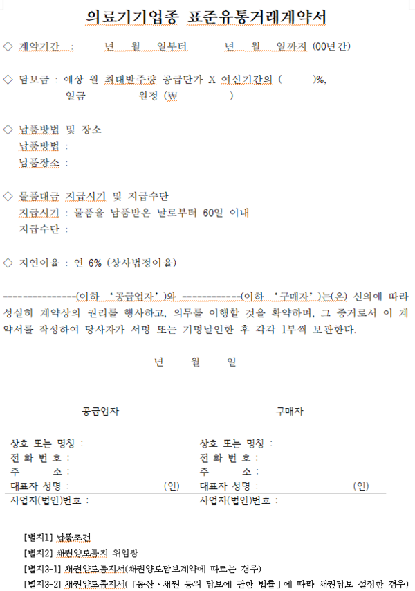 이에, 의료기기 업종 표준유통거래계약서 제정이 필요하다는 목소리가 높아지고 있다.