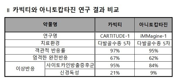 연구팀은 "다발골수종 5차 치료 환경에서 아니토캅타진 오토류셀은 지속적인 효능과 안전성을 입증했다"며 "특히 주목할 점은 신경 독성, 뇌신경 마비, 길랭-바레 증후군, 파킨슨병 등의 증상이 나타나지 않았다는 것"이라고 강조했다.
