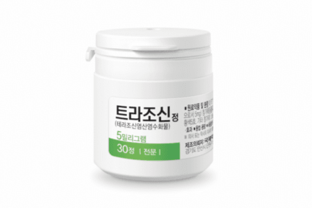 '트라조신정5밀리그램'의 주성분인 테라조신염산염수화물은 평활근을 조절하는 알파-1 아드레날린 수용체를 선택적으로 억제, 전립선 평활근의 긴장도 완화를 통해 요도 압력을 낮추어 배뇨 증상 개선하는 효과가 있다.