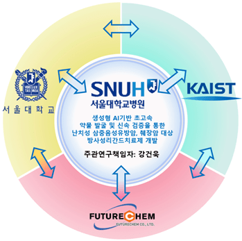 서울대병원은 서울대·KAIST·퓨처캠과 공동연구단을 구성해 난치성 고형암 극복을 위한 신약개발에 나선다.