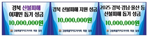 [메디칼업저버 김지예 기자] 강원특별자치도의사회는 최근 대형 산불로 인해 피해입은 경북지역 이재민을 돕고자 지난달 28~31일 모금을 통해 총 3000만원의 성금을 마련하고, 이를 대한의사협회, 경상북도의사회, 전국재해구호협회에 각각 전달하였다.