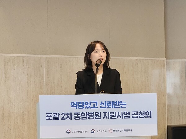 이날 공청회에서 복지부 유정민 의료체계혁신과장은 ‘포괄 2차 종합병원 지원사업 추진방향’에 대해 설명했다.
