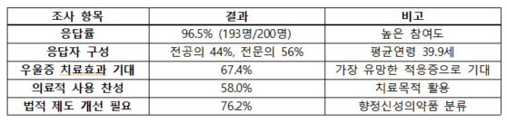 의료적 활용에 58% 찬성…향정신성의약품 분류제도 개선 필요성에 76% 동의