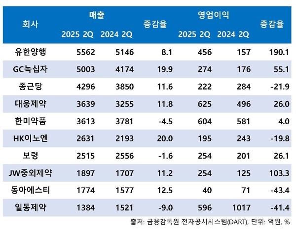 국내 상위 제약사 10곳 2분기 매출 전년 동기 대비 8% 증가