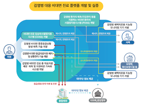 이 플랫폼은 △환자 생체신호 실시간 모니터링 △감염병 중등도 예측 및 진료 우선순위 지원(CDSS·PDSS) △응급 의료자원 상황관리 및 병상 배정 시스템 △다기관 통합 운영 체계 등 4대 핵심 기능으로 구성된다.