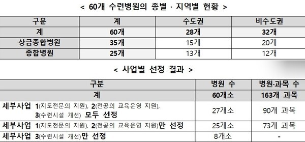 수련환경 혁신지원 사업 대상 수련병원 60개 선정·지원 시작