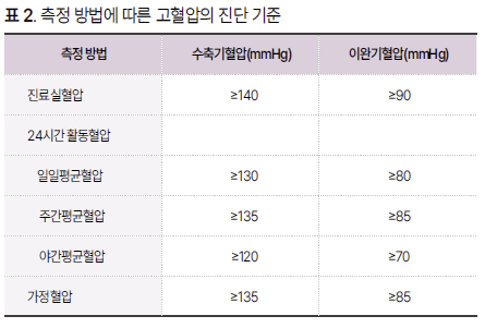 그러나 진료실 혈압만으로는 백의고혈압이나 가면고혈압을 구분하기 어려우므로, 가정혈압이나 24시간 활동혈압 측정이 중요한 보조수단으로 제시된다.