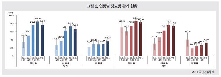 노인인구의 당뇨병 유병률이 상대적으로 높은데도 불구하고 조절률은 전반적으로 떨어지는 이유는 무엇일까? 다중이환(multimirbidity), 다제약물요법(polypharmacy), 노인증후군(geriatric syndrome)으로 대변되는 고령 당뇨병 환자의 유병·임상특성으로 인해 혈당치료가 쉽지 않다는 것이 중론이다.