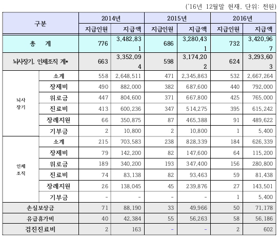 정부는 금전적 보상을 대신해 기증자 예우 사업 등 새로운 지원체계를 마련한다는 계획이다.